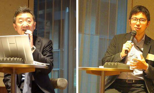 登壇したGBJ・堀内社長(左)、金融庁・水谷課長補佐