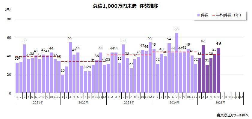 2025年上半期(1-6月)「負債1,000万円未満」倒産状況