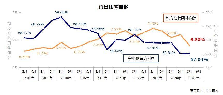 中小企業等向け貸出金残高は過去最高も、貸出比率は過去最低の67.03%