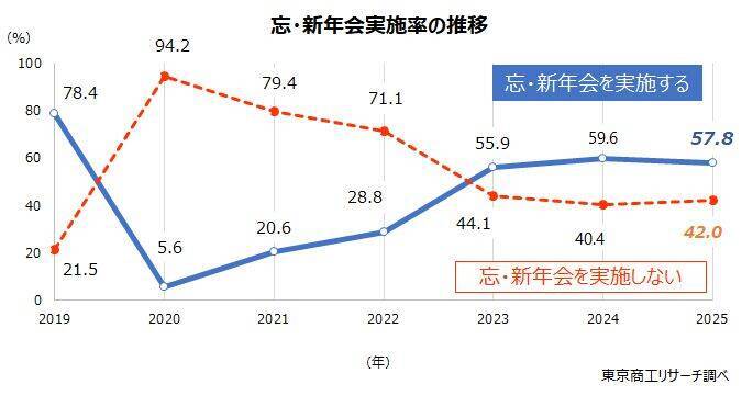 ◆ことしの忘・新年会「実施」は57.8%