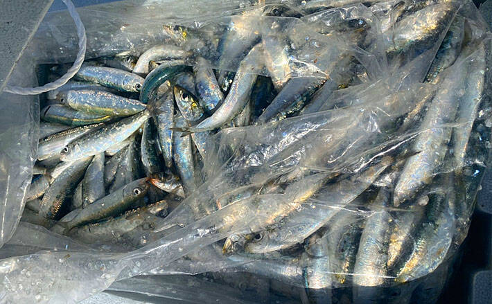 あきらめずに毎回カゴにアミエビをしっかり詰めて釣りをしていると、日の出のタイミングでヒット。まるまる太った17cmほどのマイワシをキャッチ。するとそこからアミエビなしでも釣れる入れ食いに突入し、9時頃まで続いた。気づけば200匹を超える釣果で驚きを隠せない。