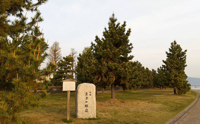 とにかく足場のいい釣り場で、1カ所で粘るのもよし、ランガンで攻めるのもよし。これは湖南・西岸の全域に共通する条件で、子供連れでも安心して釣行に臨めます。唐橋から浜大津までは、公園として整備されていて、トイレに困りませんし、湖岸道路沿いにはコンビニがあります。さすが大津市!県庁所在地!