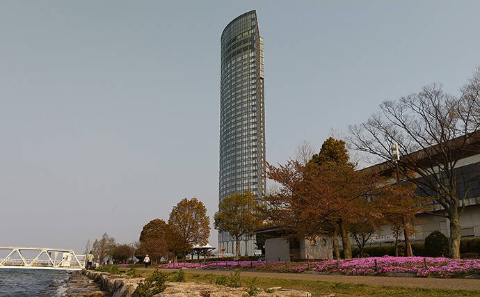 近江大橋を過ぎてすぐ、湖岸にそびえるのが大津プリンスホテル。足場がよく、ゴールデンウィーク明けから秋に数釣りを楽しめる釣り場。元々、ウォーキングコースとして人気の場所で、コロナ禍においても老若男女の姿をよく見かけました。芝桜のオススメ立ち寄りスポットでもあります。