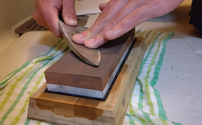 11、仕上砥石でさらにもう1回繰り返す(飛ばしてもOK)。研ぎ終わったらしっかり洗って、水気を拭き取ってから保管します。