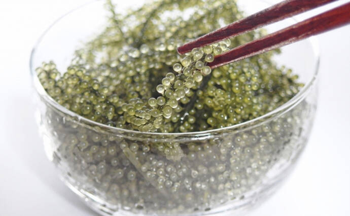 沖縄食材の中でもトップクラスの知名度をもつ「海ぶどう」。暖かい海でしか育たない海藻ですが、現在なんと瀬戸内海でも養殖されているといいます。