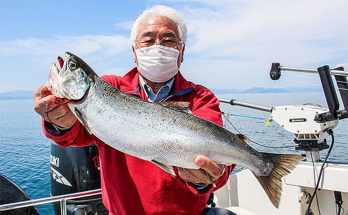 「琵琶湖の宝石」こと『ビワマス』。レイクトローリングで手軽に狙えて人気急上昇中だ。