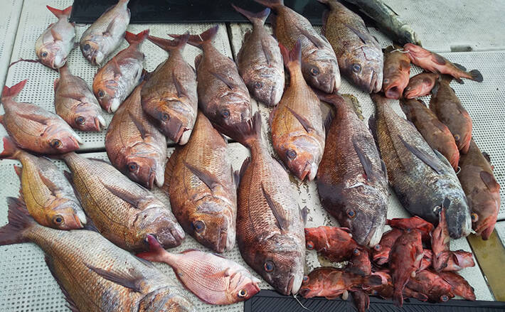 その後、食べごろサイズのマダイはキャッチできたが、底で釣れるのはガシラばかりで約6連続。その間も船中はマダイ交じりでアコウがポツポツ、羨まし過ぎる。
