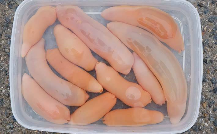 多毛類の場合、冷蔵庫で次の釣行までの一週間を生き延びさせることは簡単ではないので、納竿時に海に捨ててしまう人もいると思うが、ユムシの場合はタッパに海水を入れて冷蔵庫に保管するだけで、2週間程度は元気な状態を維持することが可能だ。この時に注意するのは以下の4点である。