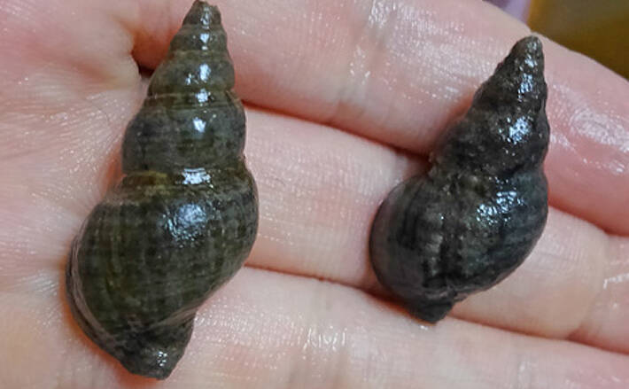 さて、カワニナがいれば「海のニナ」もいるんじゃないか、とお思いの方がいるかも知れません。実際にそのとおりで、海には「ウミニナ」や「イソニナ」といった貝が棲息しています。ニナは漢字で書くと「蜷」となり、字の通り巻貝類(とくに小型で細長いもの)に広く用いられる呼び名なのです。