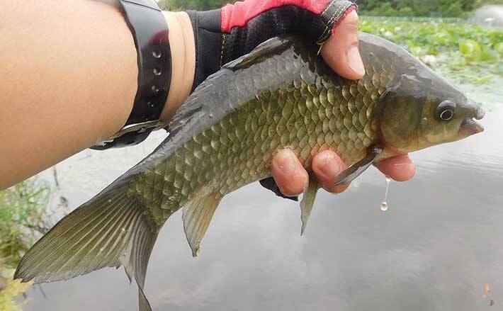 その後も追釣でマブナ祭りが続いて楽しめ、エサが切れるまでやり満足したところで納竿だ。
