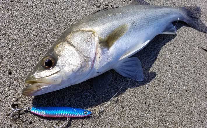 サーフの青物は下げ潮での回遊が多く、ピンクやシルバー系に反応がよい。サーフはどんな魚が釣れるかわからないのでゴールド、シルバー、ピンクの3色は必ず準備しておこう。