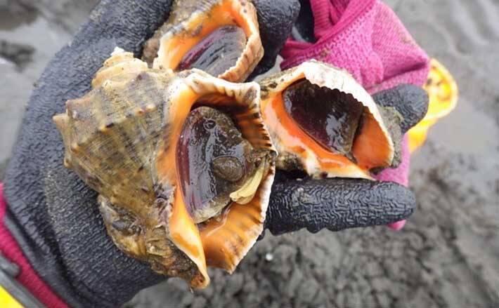 潮干狩りといえば、熊手を使ったアサリ、塩を使ったマテ貝などの二枚貝採取が主なメニュー。今回はいつものメニューに飽きた方へ裏メニュー「アカニシ貝」をご紹介。