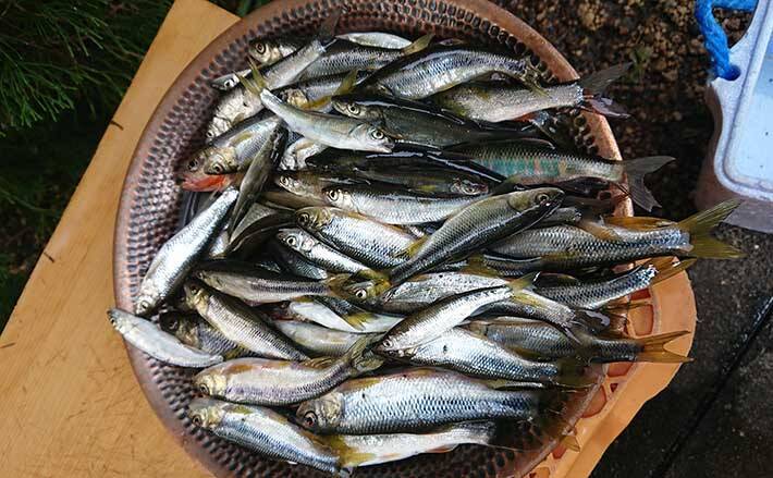 僅か1時間足らずの釣りであったが、オイカワ、ウグイ、カワムツが60匹と大釣りであった。「まきエサと食わせのハリの同化」、「魚をポイントに集め続ける」、「1投で複数匹釣り上げる」の3つを維持し続けたことが短時間での好調につながった。釣れた魚は10cmまでなら唐揚げにして、それ以上のサイズや骨の太いカワムツは干してから甘露煮にした。