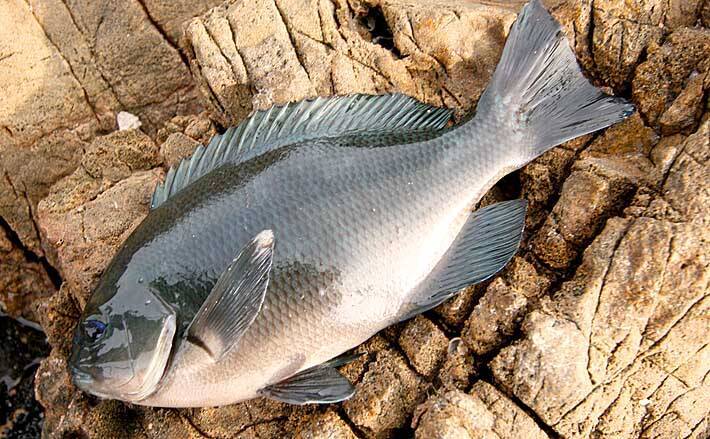一投目は竿2本ぐらい沖に投げると、すぐにアタリがありガンガン引きます。ところが、後少しのところでバラシてしまいました。すぐに2投目を同じポイントに入れると再びアタリ。上がってきたのはキタマクラでした。残念。その後もすぐにアタリがきて、かなり竿をたたく引き。これはグレではないとすぐに分かりました。上がってきたのはアイゴ。