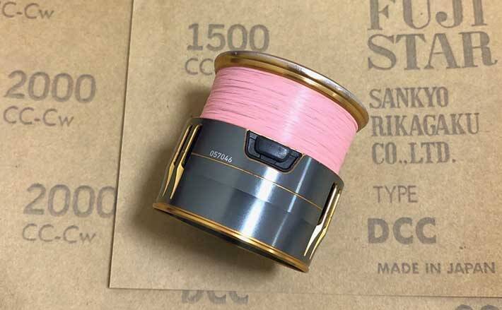 実際、私が今回削ったスプールも、元は金色だったのが、色が剥がれて、削った部分はシルバーになっている。とはいえこのシルバーが、果たして「地金」なのかどうかは、わからないところがある。よって、私の感覚では、耐水ペーパーで削る(均す)のはアリだ。これでラインの放出はまったく問題なくなる(もちろん回収にも影響なし)。