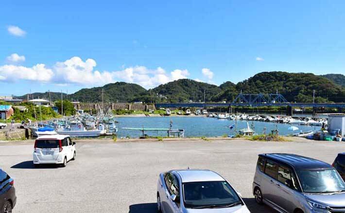 港は大きいが入り口は小さい。勝山港通り商店街の細い道を進み、突き当りが港だ。すれ違う車には十分に注意しよう。