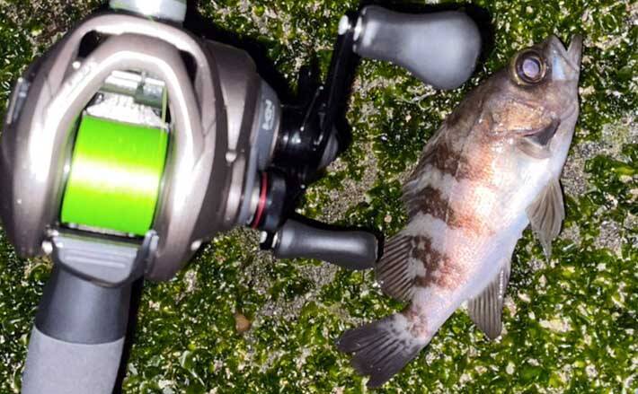 海藻が多い場所でメバリングをしていると、海藻に引っかかったか、メバルのアタリだったかわかりにくい時があるが、ベイトタックルだと見分けがつきやすい。