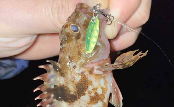 リフト&フォールとは、マイクロメタルジグを上下に操作する釣り方のことだ。ハンドルを3回巻いたら、3~5秒リールを止めてフォールさせるとフォール中にアタリが出る。カサゴを狙いたい場合は、底付近でリフト&フォールをすると釣れることがあるため、お試しいただきたい。