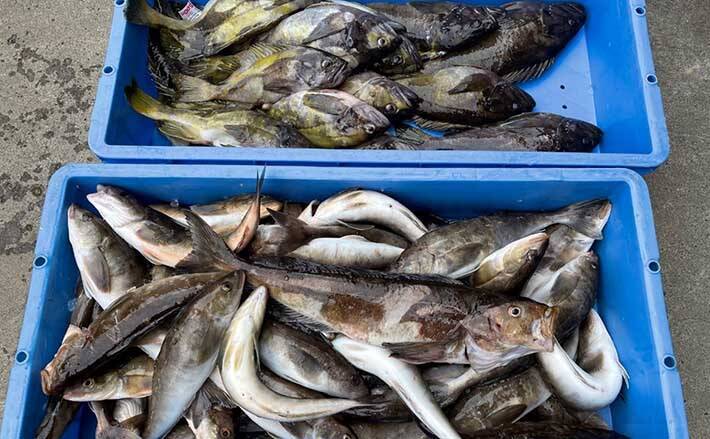 終わってみれば80Lクーラーは満タン、当日は中ホッケサイズがメイン、小さいのはかなりの数をリリース、激旨アオゾイも大漁だ。アオゾイ(クロメヌケ)は、ほとんどがオホーツク海で漁獲、刺し身や干物にすると格別の味なので、是非ご賞味いただきたい。