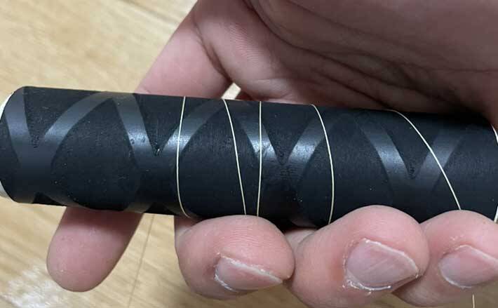 まずは釣具店でロッドのグリップの熱収縮すべり止めラバーを用意。ラバーの方を先に購入しておきましょう。