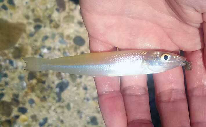 なんとかアタリを取り釣り上げてみると、サイズは10cmほど。やはりキスは平均的に小さいようだ。
