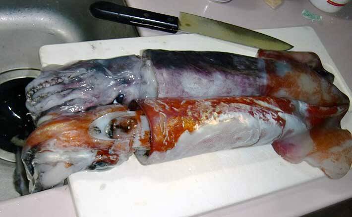 苦労して釣ったムラサキイカとスジイカ。食味に関しては一般的にスルメイカやヤリイカと比べて劣るとされていますが、上手く特徴を生かして作れば、言うまでもなくとても美味しいイカです。