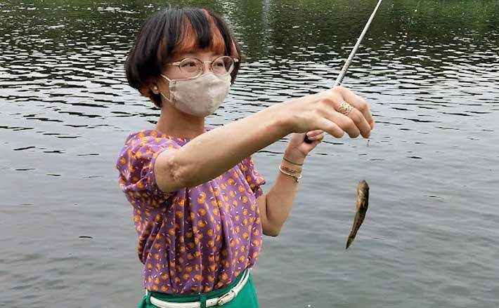 今までの小型ハゼとは世界が違うアタリで、形はハゼだけど見たことのない模様の魚がスレ掛かり。ハリを外す際の鱗感が凄い。この日、一番の大物に周囲の人たちも喜んでくれるハイライトとなりました。