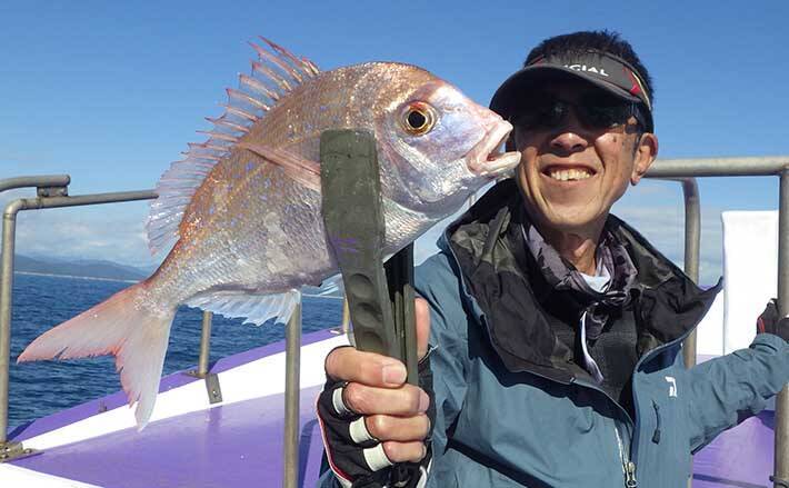 マダイの1匹目が釣れるまで、じっくりとぶれずに等速直線運動(速さも向きも変わらない一定の動き)の巻きを繰り返していた。最初の1匹は小さかったが、その後はプレッシャーから解放されたように、本命のマダイや他魚の数釣り体制に突入していた。
