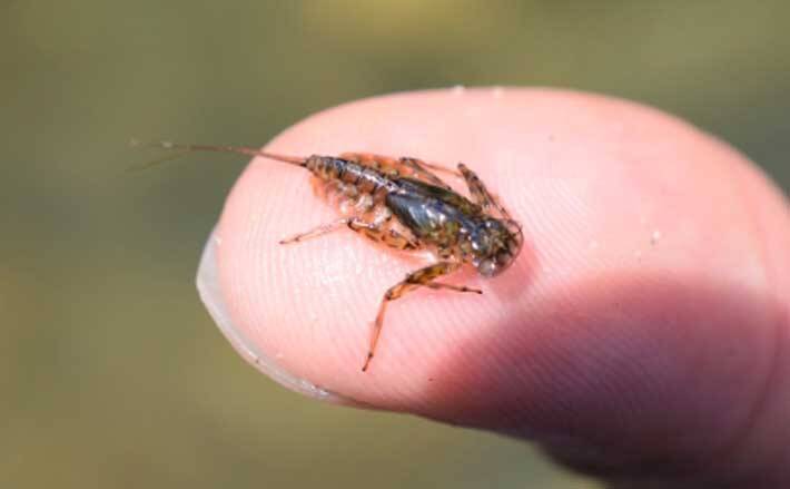 足が取れると弱りも早く食いも悪くなるので、採取に慣れていない方はピンセットなどを使うと良い。4月になるとナデ虫と言われ、白泡の立つ流速のある大きめの石に付く。これをヘチマやブラシでなでて下にタモを置くと一網打尽で採れる。