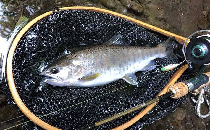 渓流トラウトフィッシングではミノーを使うのが主流になっています。筆者ももちろんミ ノーを多用する人間ですが同時にスプーンも愛用しています。本流ではほぼスプーンのみ、渓流でもスプーン縛りで釣り上がったりすることもあります。