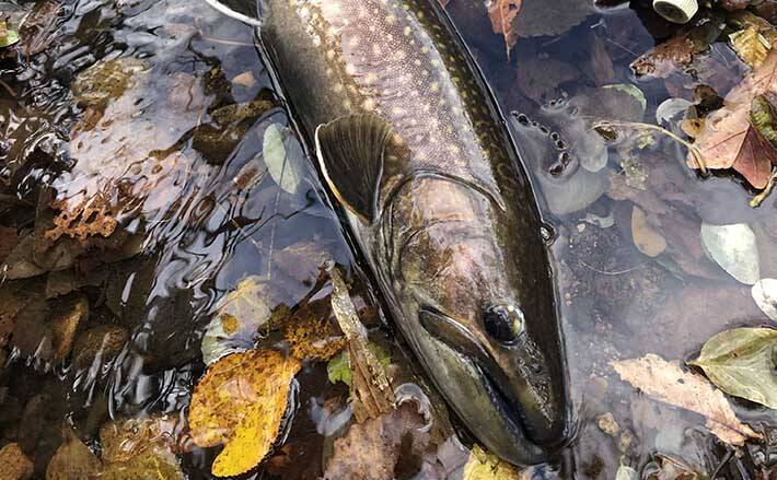 イワナが一番好きな鱒族である筆者にとって、イワナ/アメマスはシーズン通してのメインターゲット。上流域で数年過ごしたエゾイワナが降海し、エサが豊富な海で大型化したのがアメマスです。北海道の地域によってその生活サイクルが異なっており、日本海側では初夏に遡上してそのまま産卵まで川で過ごす個体もいれば、気まぐれに遡上と降海を繰り返す個体がいます。産卵時期は晩秋から初冬で、アキアジ(鮭)の遡上の後を尾けるかのように遡上します。