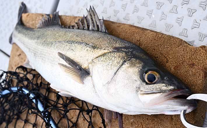 最初のポイントではアタリが1回あったもののショートバイト気味で掛からなかった。魚の活性が低いせいか底付近でのアタリ。そこで同船者と共有し、いろいろ探っていると同船者にヒット。上がってきたのは40~50cmクラスのシーバスだった。底付近でのヒットだった。
