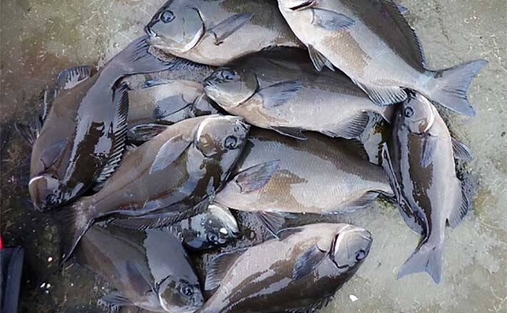 その後、納竿の午後2時まで釣り続けたが、相変わらずに30cmクラスの入れ食いは続き、そのほとんどをリリースしながら40cm超えを狙うものの、大型を釣ることは叶わなかった。最後にクロ35cm以上を選んでキープし、この日の釣りを終えた。