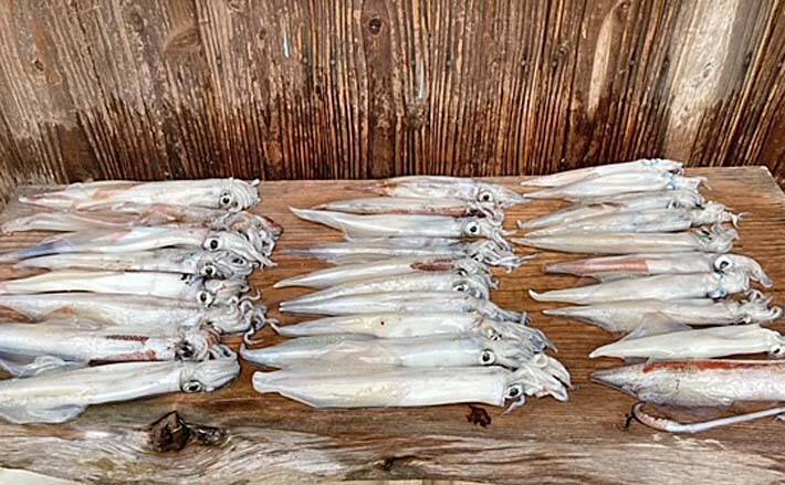 しばらく静かな時間が続いたかと思えば、突然アタリが出始めバタバタ連発。再び時間を置いて同様の状況が訪れるといったヤリイカの回遊待ち釣り。特に長い沈黙も続かない理想的な状況。