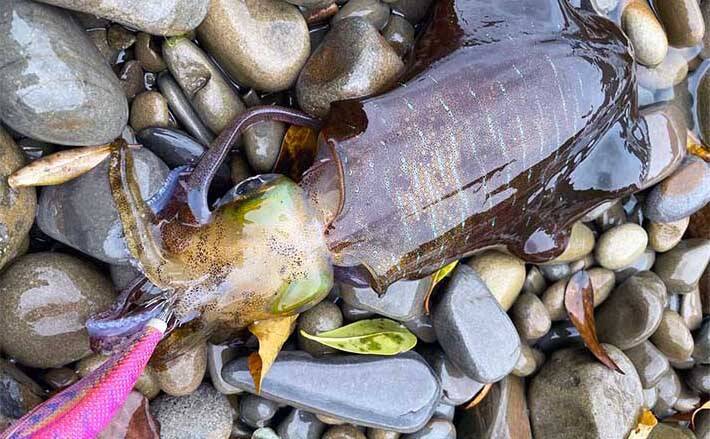 最終的な釣果は4杯手にすることができた。オスのアオリイカばかりでメスのアオリイカは確認できなかったが、型も500gほど、タイミングが合えばかなり活性も高くエギへのあたりもかなりアクティブになっていた。