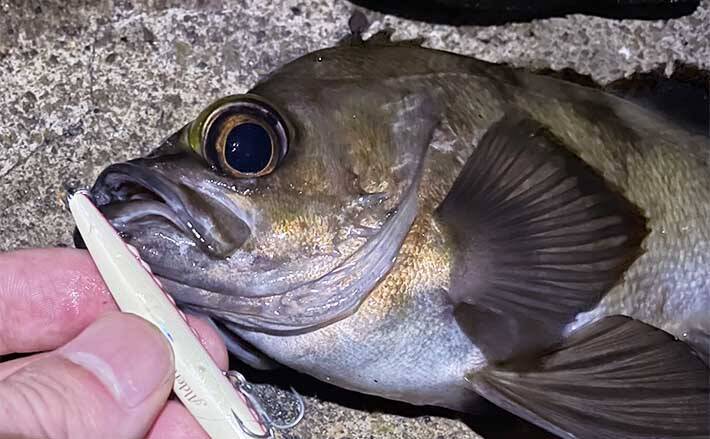 アーバン・アジングではアジはプラグでは釣りにくいのだが、あまりスレていないポイントならば、マイクロメタルやマイクロタイラバなどは効果的だろう。時合いはマイクロメタルで狙う。そしてメバルは、夜になってから、潮位が高い状態で藻の上をトレースするプラグ1本で狙っていく。
