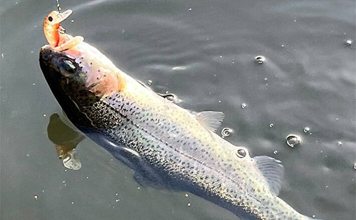 昼食後は下池に陣地移動して午前放流の残存個体を狙うも、思うように釣果が伸びず午後の放流の時間となった。放流と同時にスプーンを2.1gの放流カラーに切り替えて狙うと次々にヒット。