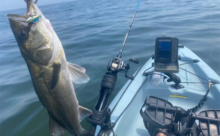 筆者がカヤックライトゲームに向いていると考えるのは、水深1m以上10m未満のエリア。水深1mくらいでも意外なほど魚が入ってくるのに加え、水深が深くなるほど底取りのために重いルアーが必要となり、必然的にタックルもヘビーになってくるからです。