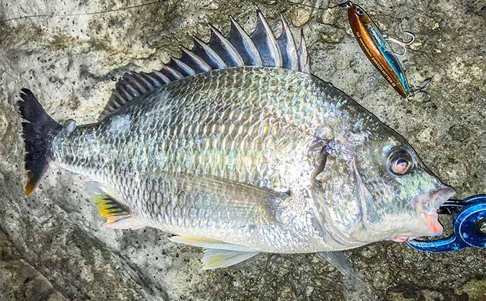 今度もトルクある引きだが、ジャンプはしない。寄せて確認すると銀輪の幅広の魚はキビレだった。シーバスの引きもいいがキビレの抵抗も大好きである。