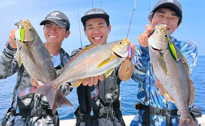 今回はいかにもイサキらしいロングスライドや長く追わせる釣りがハマった形となった。また、ジグの重さやカラーについてだが、玄界灘の魚礁や瀬周りのSLJは水深30~50mを狙うことが多く、潮もそこまで速くないエリアなので、40~60g程度のジグがあると安心だ。