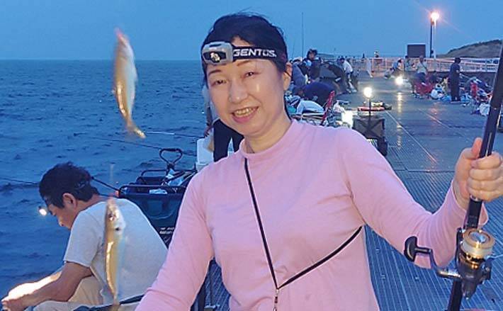 午前3時30分を過ぎたころ、周囲が明るくなったと感じたころに小アジが釣れだした。4時ごろにピークを迎えると、空バリのまま仕掛けを投入しても多点掛けになる。妻が一度に4匹掛けて「うわぁーすごいすごい。私小アジ釣りに名人になったわ」と楽しんでいた。
