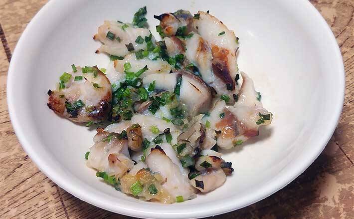 あとは刻んだネギやショウガを加え、包丁で軽くたたけば「タネ」の完成。そのまま食べてもいいが、今回は焼いてみよう。