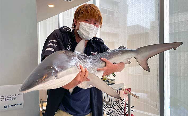 記念撮影をしている人も多く、「まさか本屋さんに本物のサメが置いてあるとは思わなかった」と驚く声も。真夏での開催ということもあり、魚体の大きなクロヘリメジロザメは1日目終了後、状態を考慮し、解体。2日目では頭とヒレのみの展示となりました。