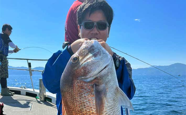 その後も、シケを挟んだ24日には75、72cmを筆頭にマダイで全員安打達成。27日も船中22匹の釣果で、サオ頭は6匹をキャッチした。