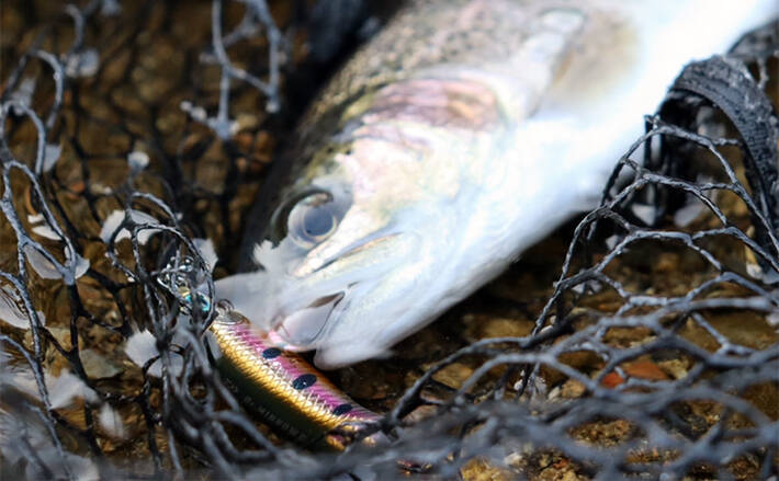 また、ニジマスも含めた縄張り意識の強い大型のトラウトを目視で狙い撃ちし、速いアクションで攻撃のスイッチを入れさせて威嚇バイトに繋げる……といった釣り方もミノーならでは。クリアな水質の釣り場ならチェイスとバイトシーンを見られるのも魅力です。