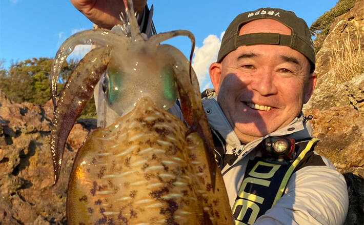 水温が下がらない伊豆の海。水温変化も16~18度と変動傾向にはあるものの、ショアからのエギングにも変化が見られます。