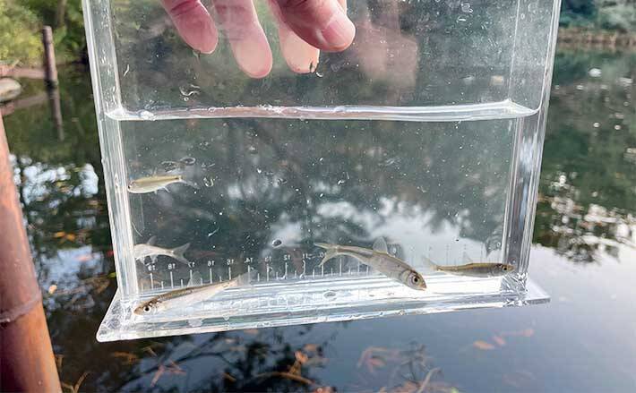 淡水小物釣りで釣った魚を観察