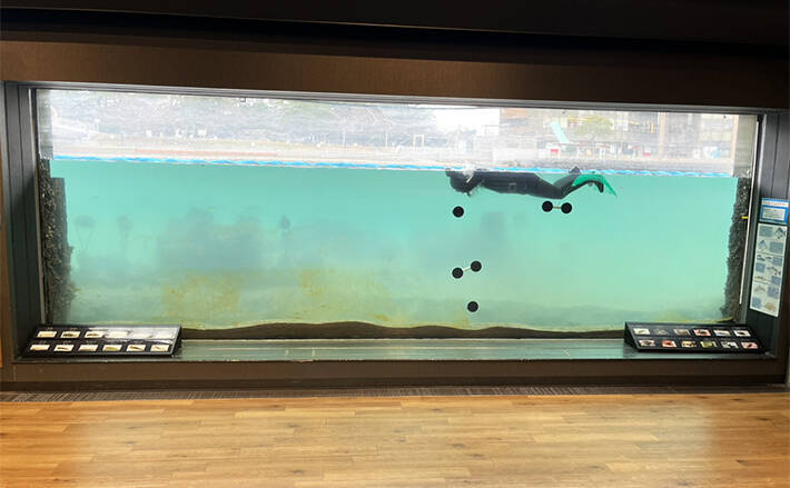 観察窓のすぐそばには魚礁も沈めてあり、シーズンによってシーバスやメバルといったお馴染みの魚を見ることができる。そして何より水族館とはまた違う、自然界で生きているままの魚を観察できる。根気強く見ているとカニやエビを捕食する姿や餌を求めてウロウロする姿が見える。これだけでも釣り人なら興味津々だろう。