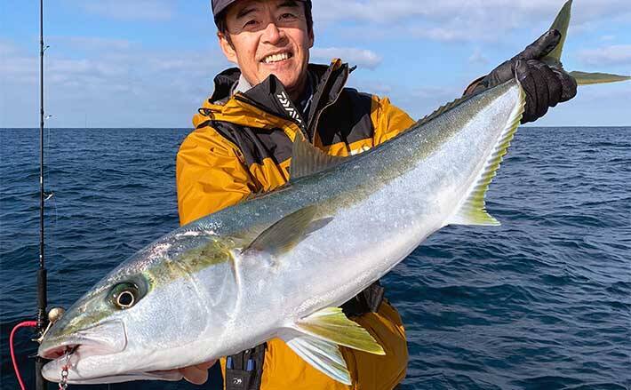 しかし潮の動きが鈍く風も弱いことから釣れそうな気配はない。最初からジギングをしている同船者もまだアタリがないという。そこでタックルを一気にライトなアイテム(リール:シーボーグG200JL+ロッド:ネオステージDGJ63B-2)に交換し、ジグも140gをセット。これでジグを打ち直すと、底から水深の半分くらいまで巻いたところですぐにヒットしてくれた。上がって来たのは60cmくらいのヤズだったが、早いうちに魚が釣れると本当にホっとする。