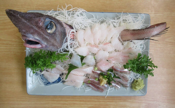 しかしその身は水分と弾力に富み、刺身にすると独特の質感があって美味であること、また大きく肥大する肝臓が非常に濃厚であることが徐々に知られるようになり、水揚げ漁港近くの鮮魚料理点が提供し始めるとすぐさま大ヒット。地域の名物として知られるようになり、やがて美味な魚として知られるようになった歴史があります。